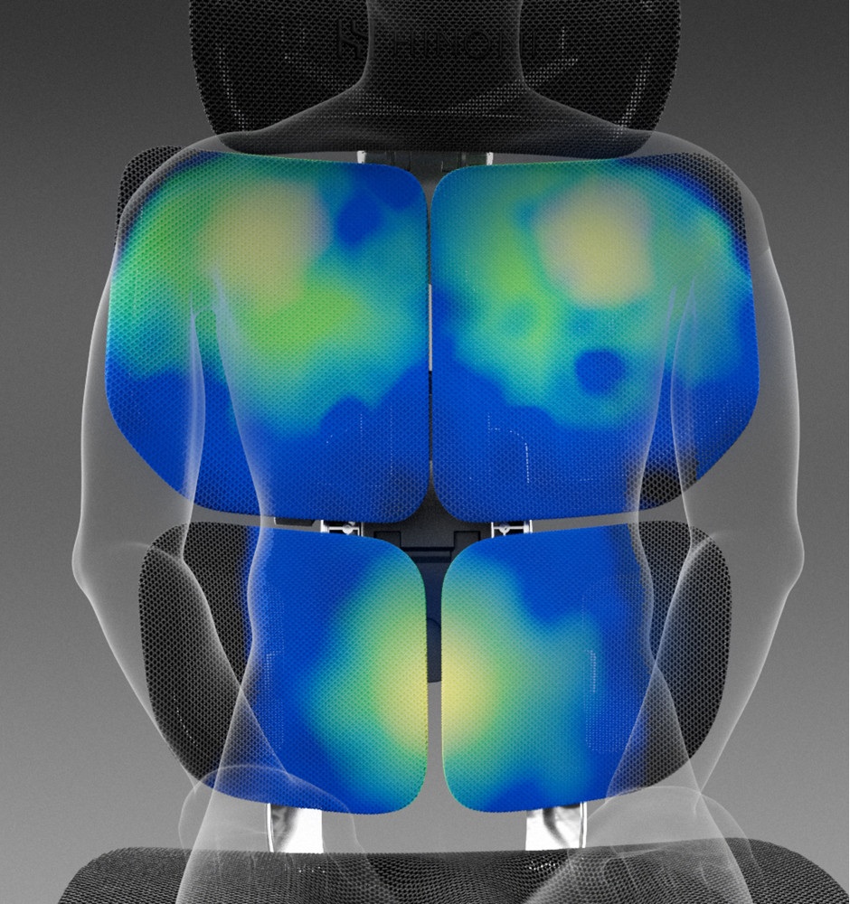 Длительные исследования показали что спинка QuadSync снижает нагрузку на позвоночник на величину от 20 до 30% , снижает напряжение в зонах контакты спины с креслом на 30-35% за счет увеличенной площади контакта спины с спинкой кресла.
